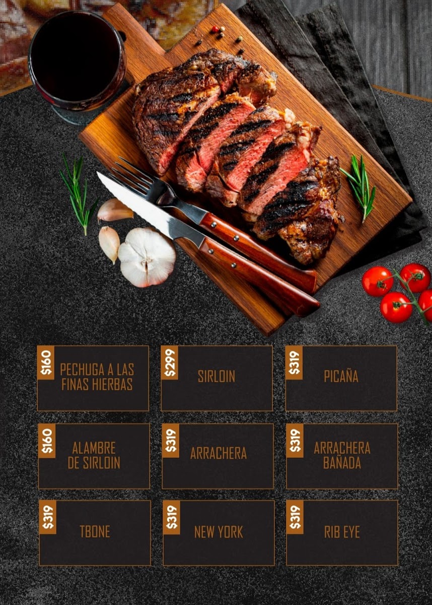 Arrachera 200 gr, jamón, tocino, salchicha para asar, queso manchego y amarillo, aros de cebolla, guacamole, lechuga, tomate y cebolla.
